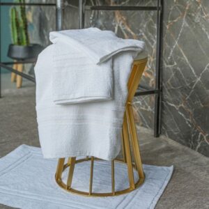 🛁 Spugna 400 g/m² – morbida e altamente assorbente 📏 Dimensioni perfette – asciugamano, telo bagno e ospite inclusi ⚪ Colore bianco – elegante e versatile 🧼 Facile da lavare – mantiene forma e morbidezza 🏨 Ideale per Hotellerie – qualità professionale