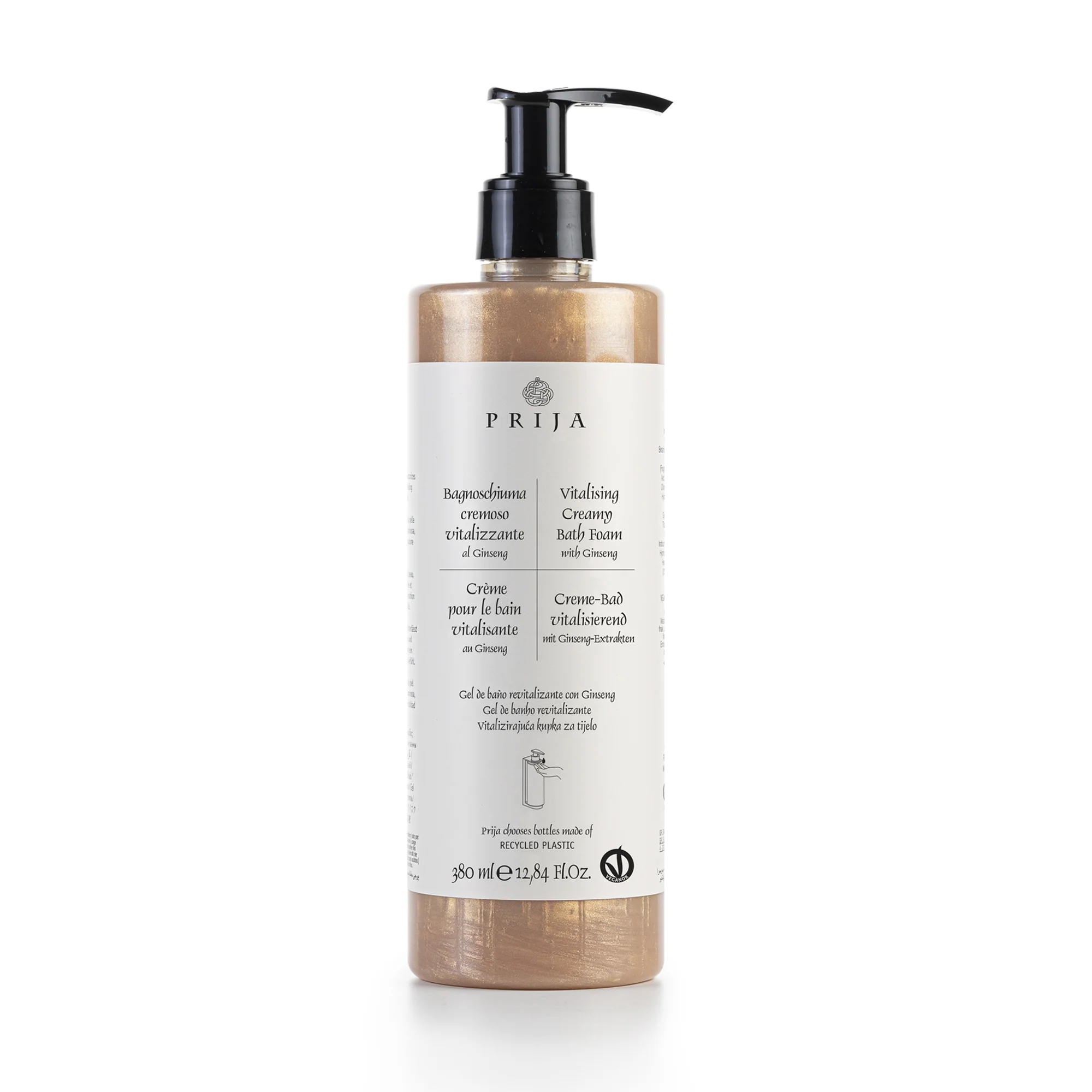 Bagnoschiuma cremoso vitalizzante al Ginseng, deterge delicatamente la pelle lasciandola idratata e luminosa, per un’immediata sensazione di vitalità su tutto il corpo. Arricchito con estratto di Ginseng: le proprietà tonificanti della pianta sono note in Oriente da molti secoli. Gli estratti delle sue radici hanno proprietà tonificanti e rivitalizzanti sulla pelle. Lo speciale effetto luminoso è fornito dalla Mica, un minerale estremamente brillante.