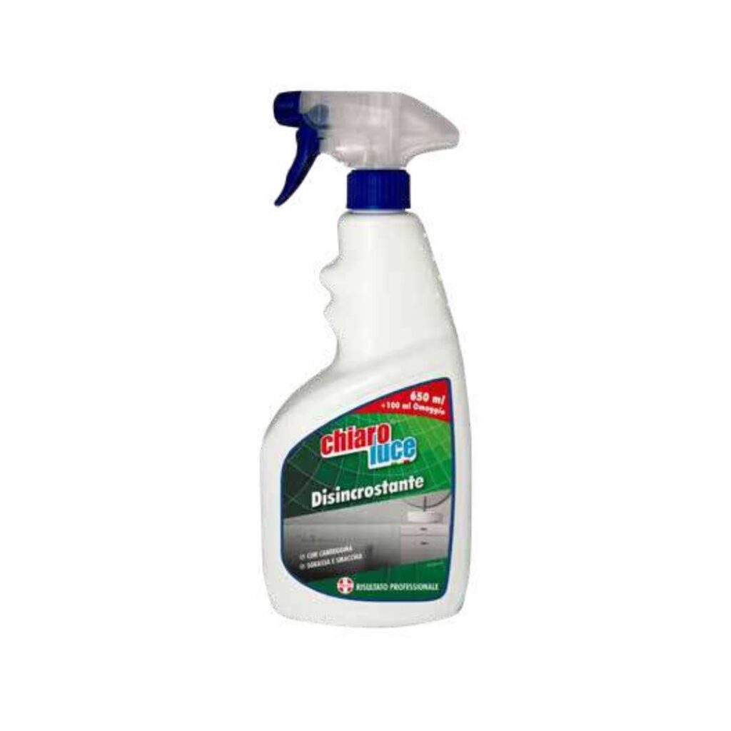 Perfetto per cucine, bagni, piastrelle, lavelli, rubinetterie e superfici in acciaio, il disincrostante ChiaroLuce è il tuo alleato per una casa sempre pulita e splendente.