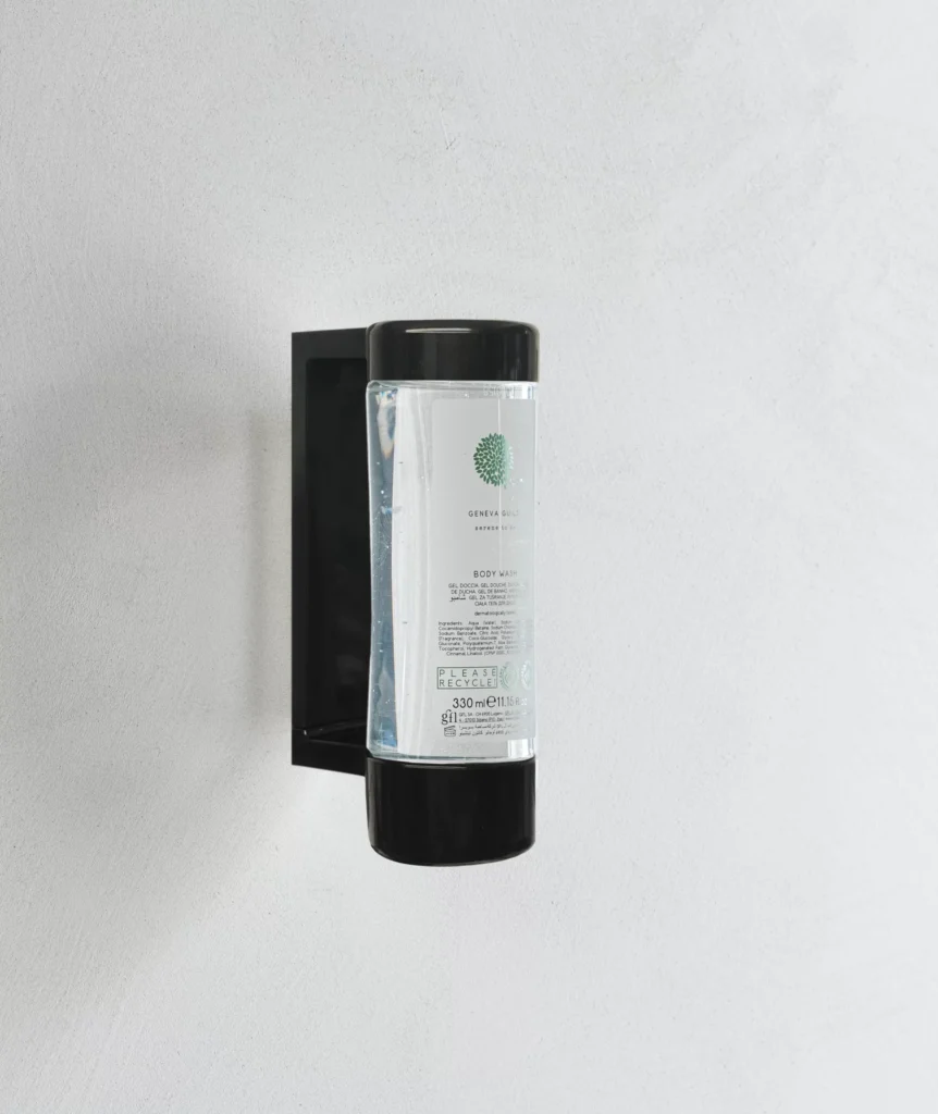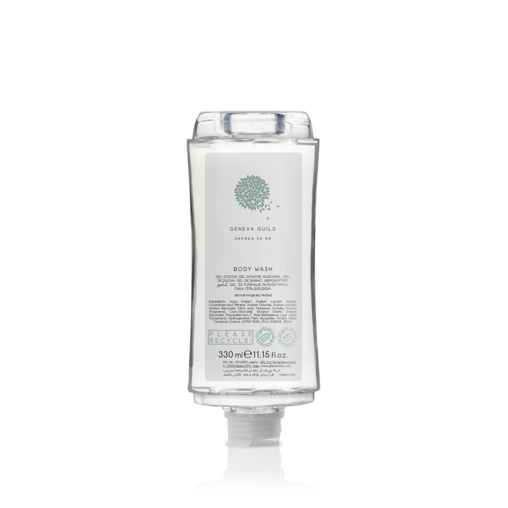 Gel doccia di Geneva Guild deterge la pelle dolcemente; la sua formula, dal profumo delicato, è arricchita con estratto di aloe vera.