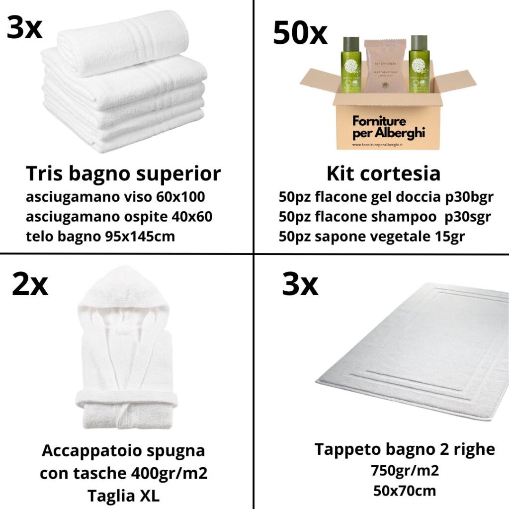 ✔ 3 Tris da Bagno Superior (450 gr/m²) – Ogni tris include: