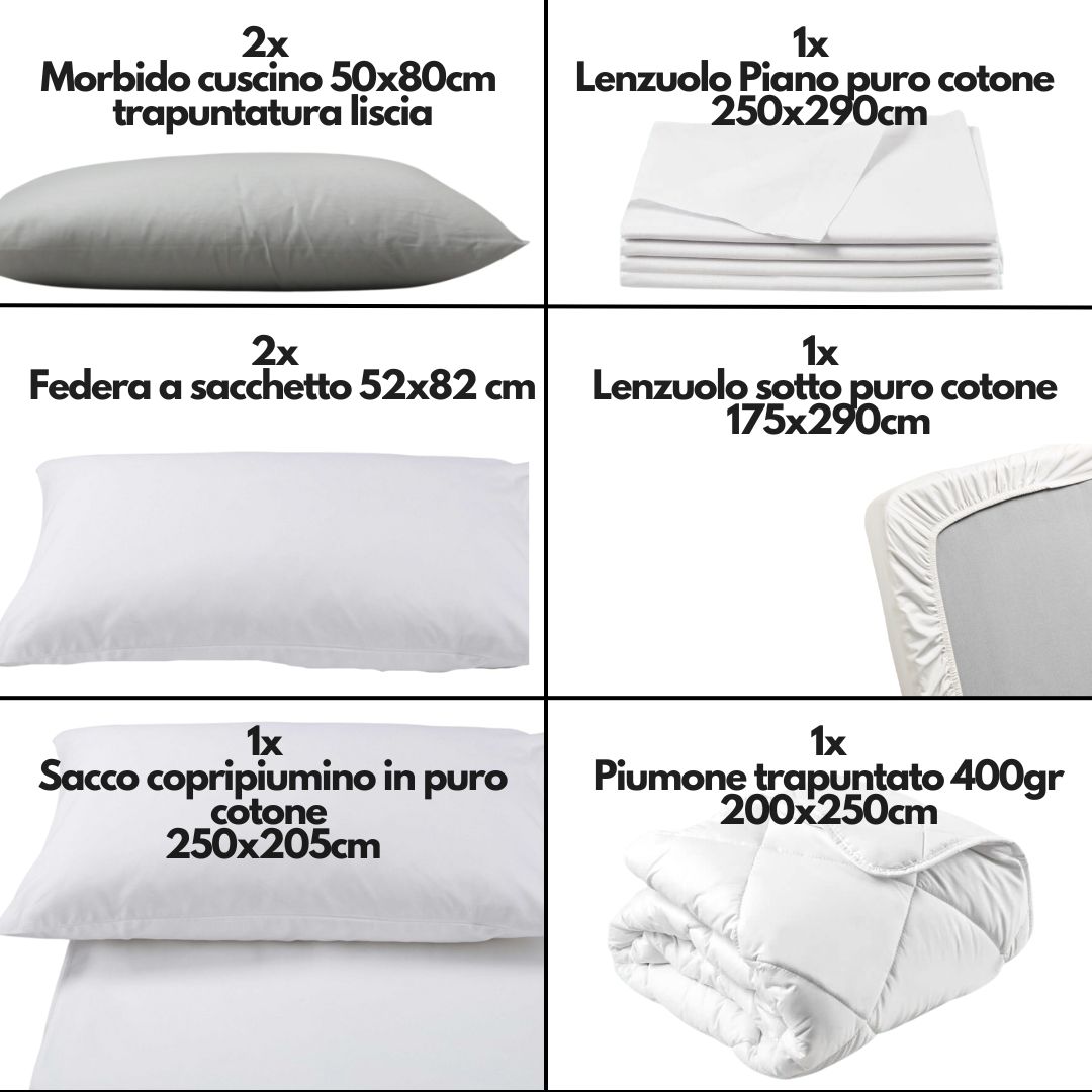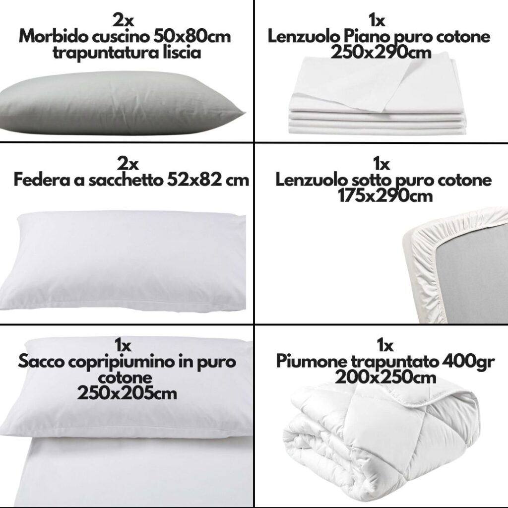 • 1 lenzuola sopra (250×290 cm)