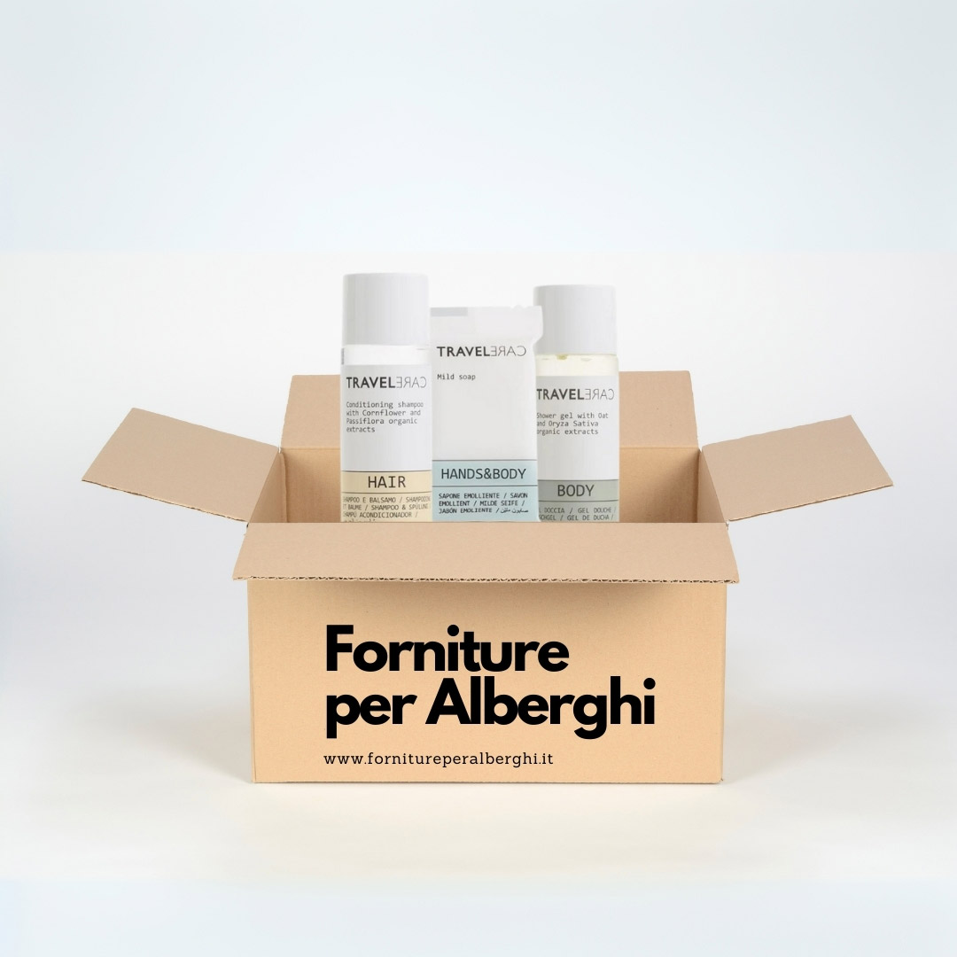 Il Kit Starter Basic TravelCare è una scelta versatile, pensata per hotel, bed & breakfast, case vacanza, agriturismi e qualsiasi struttura che desideri accogliere i propri ospiti con cura e attenzione.
