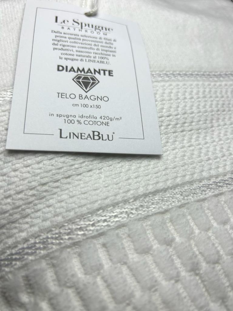 Il Telo Bagno 100x150cm Linea Diamante comprende tutto il necessario per il tuo rituale di igiene quotidiana. Il telo bagno è realizzato in Spugna 100% cotone idrofilo, con l’utilizzo di materiali di altissima qualità e un design esclusivo che aggiunge un tocco di lusso al tuo bagno.
